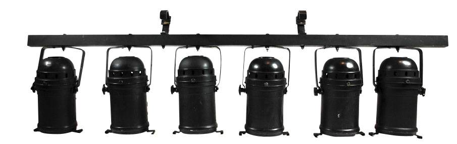 Cette barre de 6 projecteurs traditionnels PAR64 noirs, équipés de porte-filtre noir, de lampes 1000W, avec une alimentation PC16A mono, lyres de suspension, crochets & élingues. Sa consommation électrique est de 6000W.
