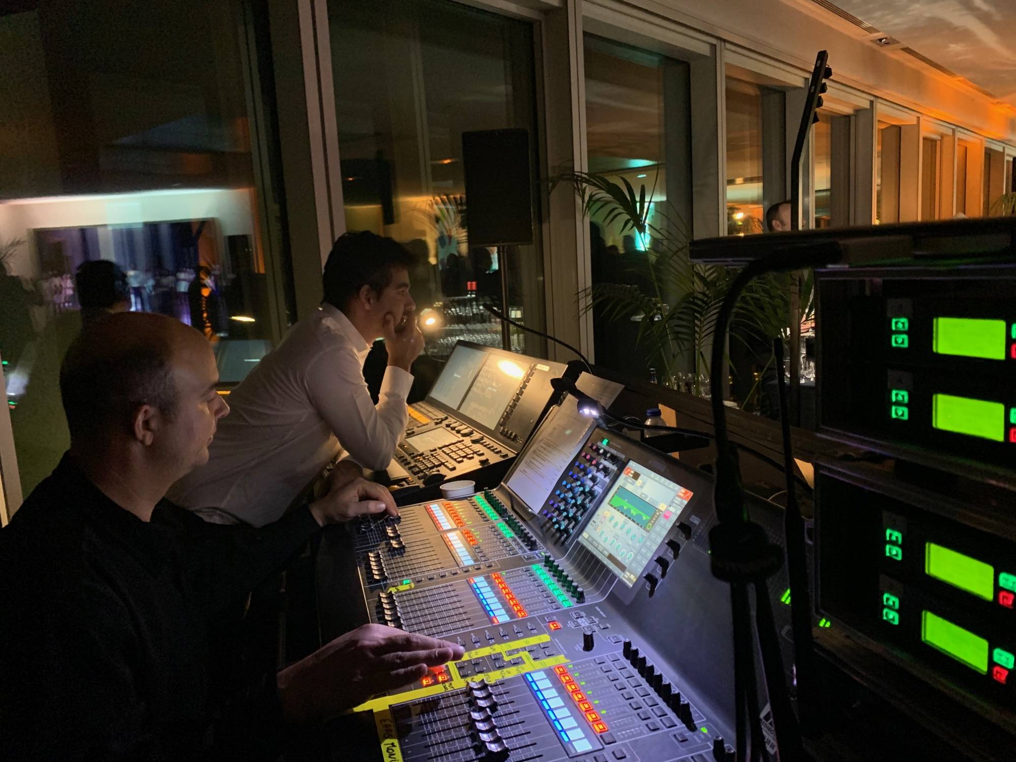 Pour cette soirée privée à Marseille, nous avons installé un dispositif de plus de 200 projecteurs sur batterie, une diffusion sonore en SYVA de L-ACOUSTICS et sonorisé deux groupes en live avec près de 16 liaisons HF et 16 liaisons ear.