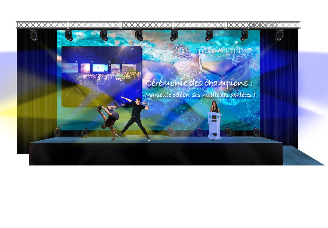 Médiacom, prestataire dans le domaine du son, de la lumière, des équipements scèniques et de la vidéo, dispose d’un bureau d’étude équipé de nombreux logiciels AUTOCAD, ILLUSTRATOR, STUDIO MAX 3D, MSD …Nous vous proposons de nombreuses solutions scénographiques pour vos événements.