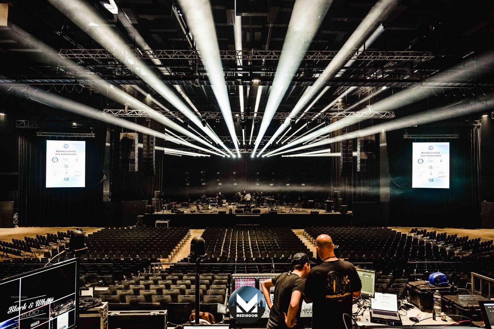 - 1 régie vidéo complète de captation avec plusieurs caméras et 2 écrans led de 12M2 KINESIK