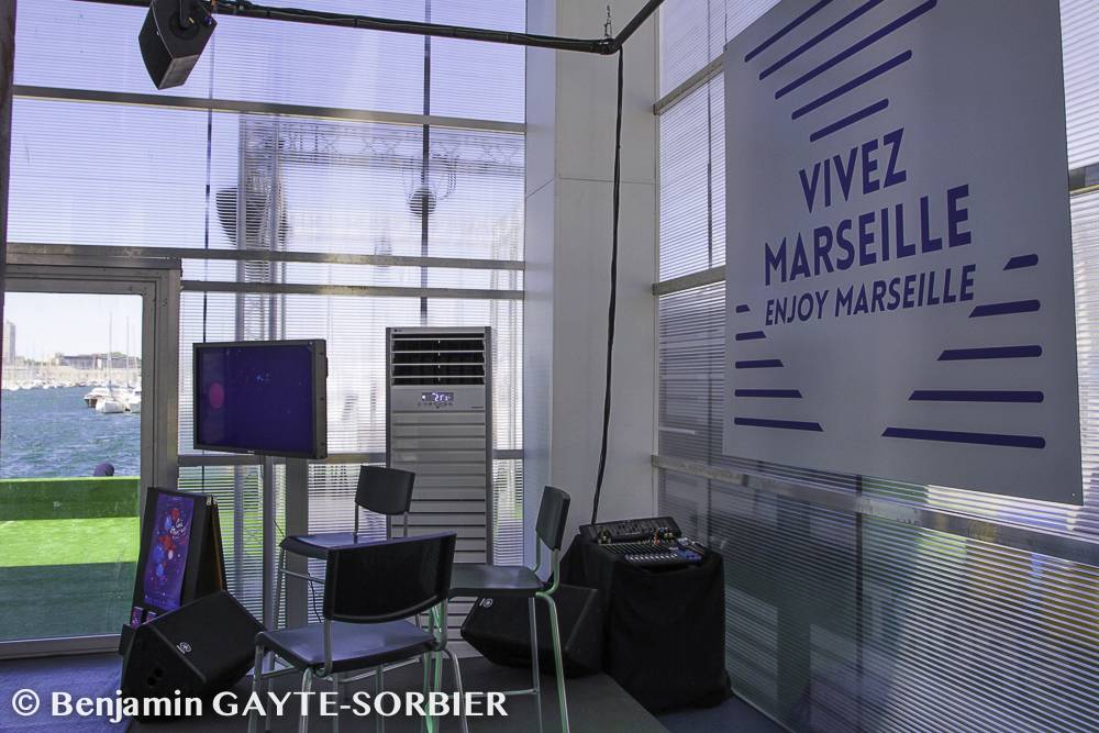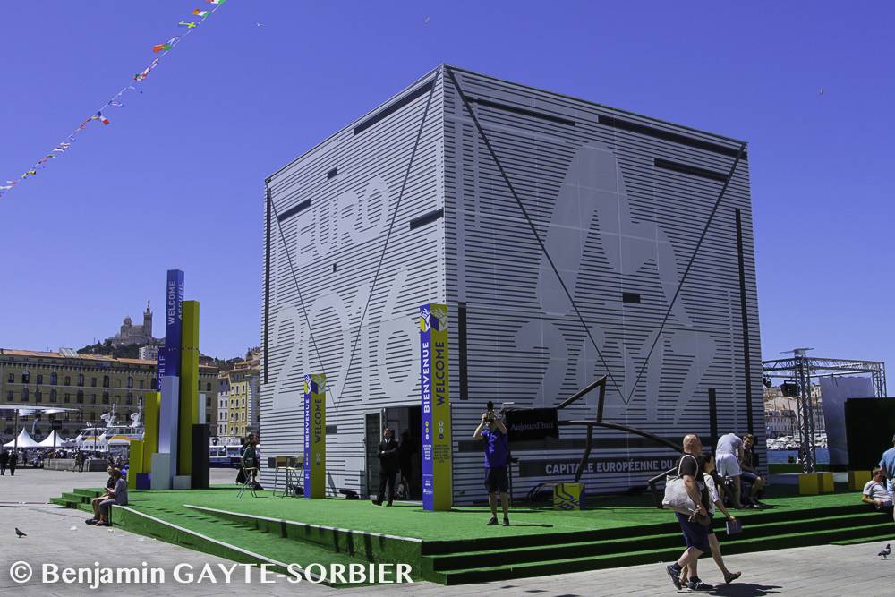 Durant l’EURO 2016, la Ville de Marseille et l’Office de Tourisme ont souhaité créer une structure éphémère comme point central d’information de l’EURO 2016 sur le Vieux Port de Marseille. Cette structure a été imaginée par le scénographe Philippe MALTA et a été construite par la société EVENEMENT SUD, alors que Médiacom a géré la mise en lumière, le son et la vidéo.