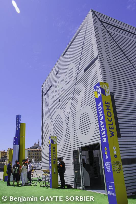 Durant l’EURO 2016, la Ville de Marseille et l’Office de Tourisme ont souhaité créer une structure éphémère comme point central d’information de l’EURO 2016 sur le Vieux Port de Marseille.