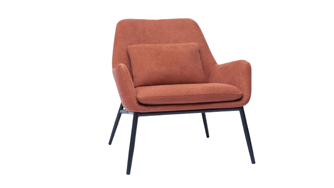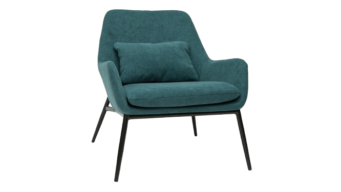 Fauteuil moderne et tendance en tissus effet velours, pieds en métal noir.