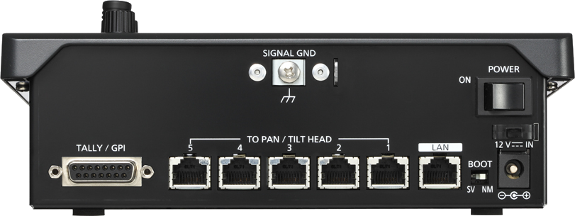 - Controle jusqu'à 5 têtes de caméra motorisées pouvant etre controlées par connexion de série