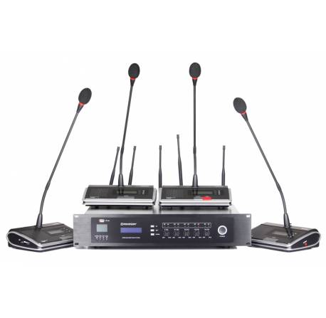 • 4 canaux peuvent fonctionner simultanément (1 président et 3 délégués). La quantité de délégués n’est pas limitée (FIFO)