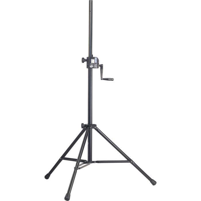 Ce pied H.P à crémaillère de chez K&M est téléscopique, d'une hauteur de 1385-2180mm. Il peut contenir une charge maximale de 50Kg et enfin son poids est de 8.6Kg. Cette caractéristique est gage de solidité et de stabilité pour le matériel utilisant ce type de pied.