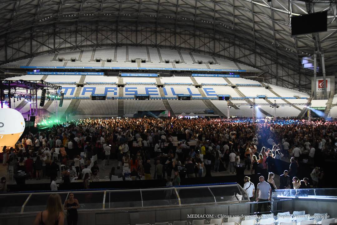 Médiacom était le prestataire technique de la clôture du Son des Guitares les 20 ans au Stade Vélodrome de Marseille.