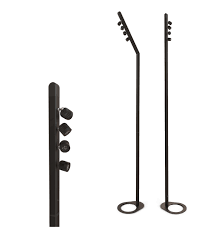 La tête du mat es composée de 4 spots orientables indivuellement. Le nouveau système d'assemblage sans fil offre une variation droite ou inclinée du T4.